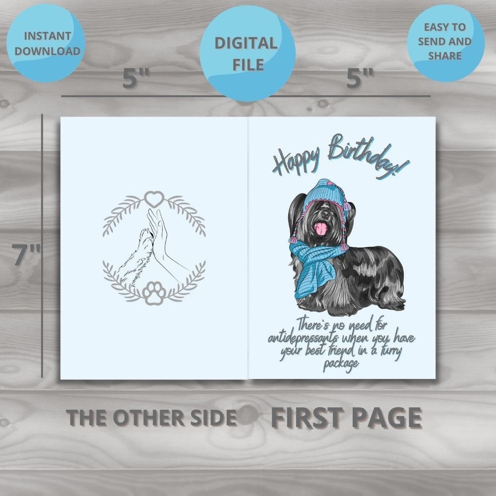 Enjoy the original and charming birthday card with dog motifs! This digital card comes in PDF and JPG format, making it easy to print or send via email. It is ideal for anyone who loves dogs and wants to express their love and attention on their birthday. Purchase this product now and share your joy and warm message with your beloved friend or family member who loves dogs.